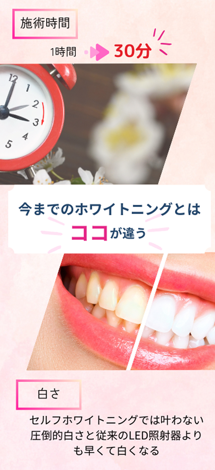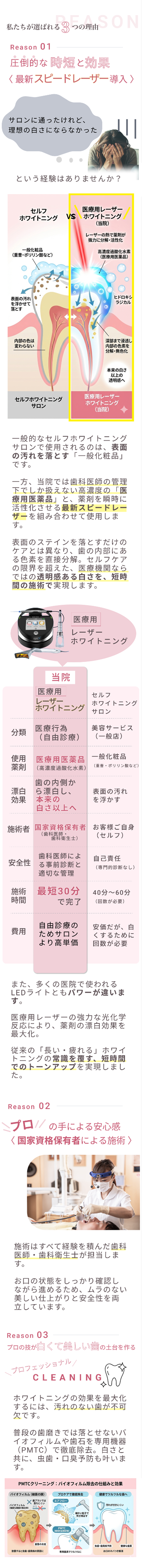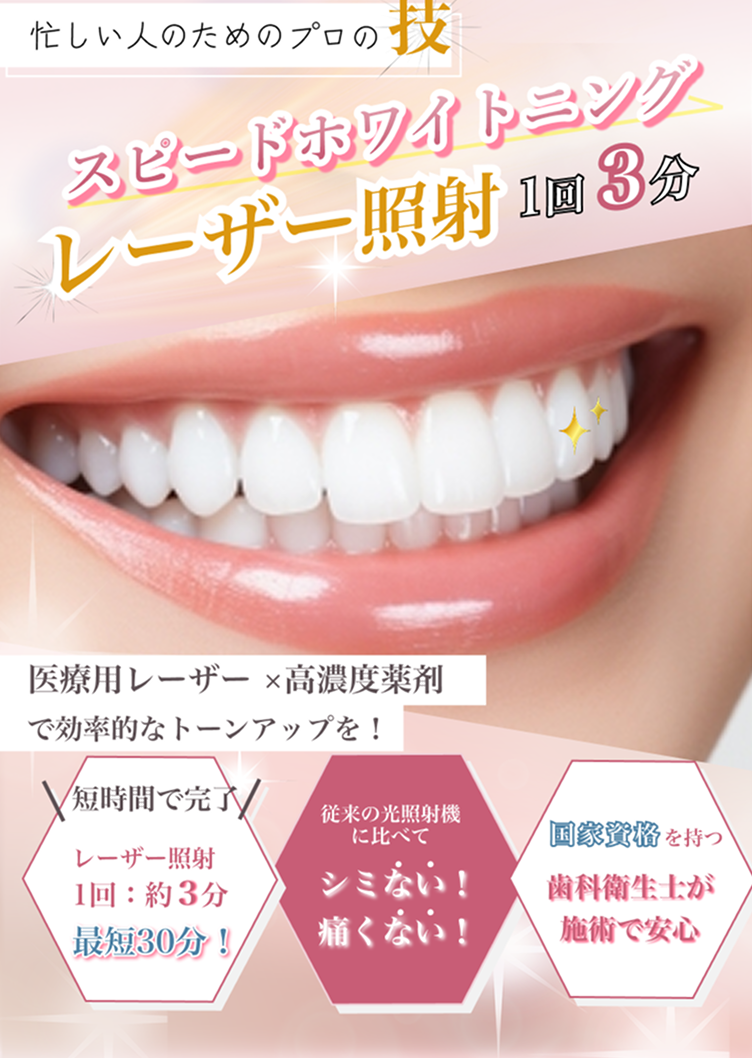 歯科用レーザーの強力な光エネルギーを使用しているためです。一般的なLEDライトよりも効率的に薬剤を活性化できるため、短時間で高い効果を目指せます。